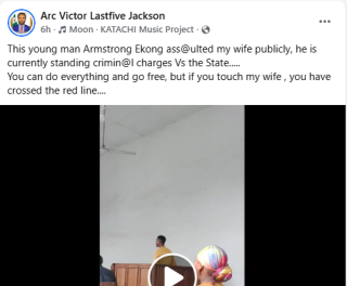 “This young man, Armstrong Ekong, ass@ulted my wife publicly. He is currently standing crimin@l charges vs the State. You can do everything and go free, but if you touch my wife, you have crossed the red line,” he captioned the post.