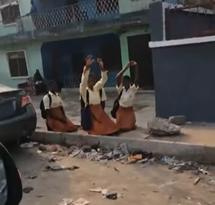 A video of some area boys punishing female students for going late has gone viral. Apparently, the area boys spotted the girls going to school after resumption and decided to punish them.