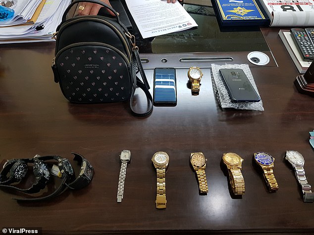Investigators searched her room and found more than 10 luxury brand watches and smartphones.