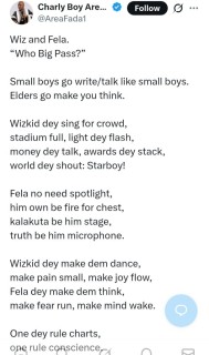 In his post, Charly Boy highlighted the contrasting legacies of both artistes, noting that Wizkid represents modern stardom, global recognition, commercial success, and entertainment, while Fela stood for resistance, truth, and social consciousness.