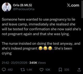 A female Corps member has sparked widespread discussions online after breaking down upon discovering she is actually pregnant, despite initially faking a pregnancy to leave NYSC camp.