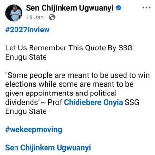 “Some people are meant to be used to win elections, while some are meant to be given appointments and political dividends.” The suspect further attached the photograph of the SSG to the post.”