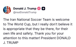 “The Iran National Soccer Team is welcome to The World Cup, but I really don’t believe it is appropriate that they be there, for their own life and safety,” Trump said on his Truth Social platform.