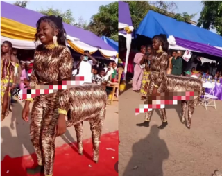 Ghanaian lady slays in horse-inspired attire, graduates from fashion design school (video)