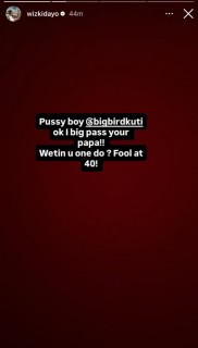 He wrote: “I Big pass your papa. Wetin you won do? Fool at 40. I’m Big Wiz everyday.”