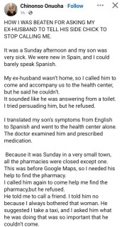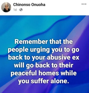 In a series of Facebook posts, Chinonso alleged that she endured ‘domestic violence, infidelity, emotional and psychological abuse during her marriage.’