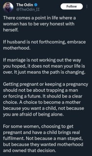 A relationship advice has sparked widespread debate on X, formerly Twitter, after a man urged young ladies to rethink how they view marriage and motherhood.