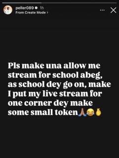 “Please make una allow me stream for school. As school dey go on, make I put my live stream for one corner dey make some small token.”