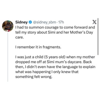 On Monday, February 23, an X user took to his handle to claim that he attended Simi’s mother’s daycare and that he has memories of things the singer did to him and other kids that should never have been done to any child.