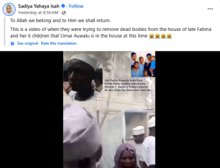 A Kano newscaster, Sadiya Yahaya Isah, has shared a video showing prime suspect, Umar Auwalu during the evacuation of bodies of his aunt and her six children from the m8rder scene.