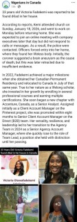Victoria Kemi Adedoyin, 33, who relocated to Canada in July 2022, was a highly accomplished executive working with a multinational company in Canada.