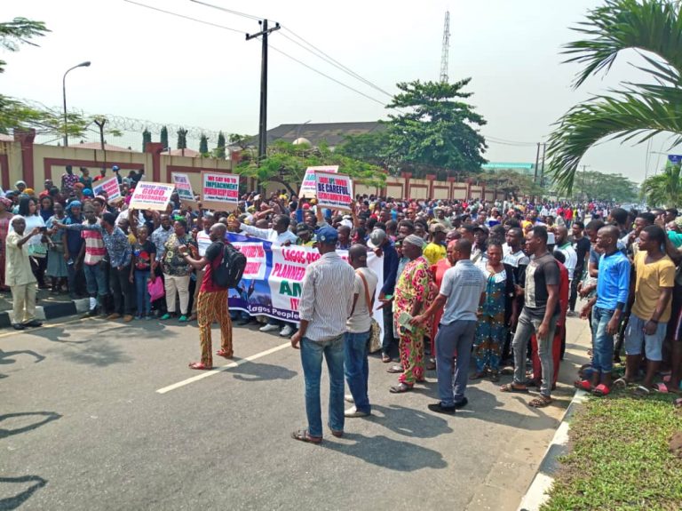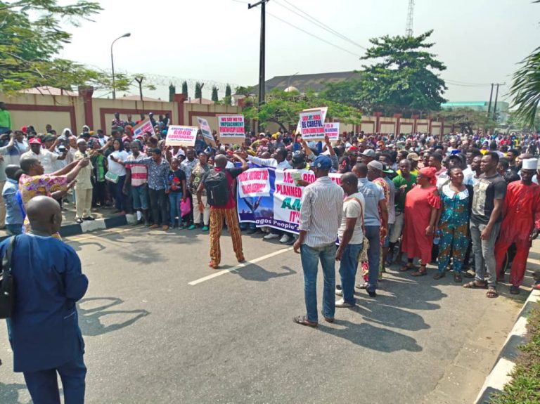 Photos Of Pro-Ambode Group Protesting His Impeachment Move At Lagos Assembly