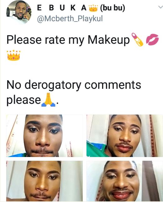 Rude Shock As Nigerian Man Shares Make-Up Photos