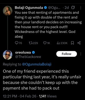 In her tweet, which has garnered over 330k views, Bolaji Ogunmola shared that the landlord doubled the rent of a tenant after the apartment was renovated.