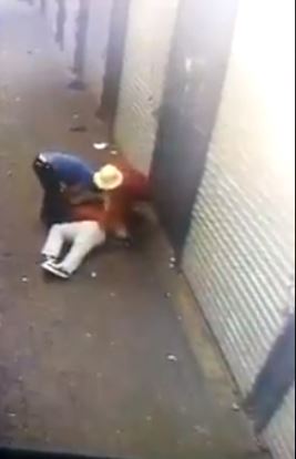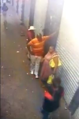 In the video, the man can be seen talking with the woman before the gunman approached from behind and shot him.