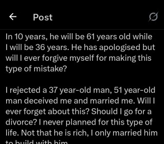 In her tweet, which has garnered over 2.3 million likes, she rejected a 37-year-old man’s advances, stating her husband deceived her into marriage.