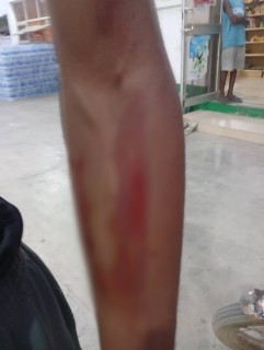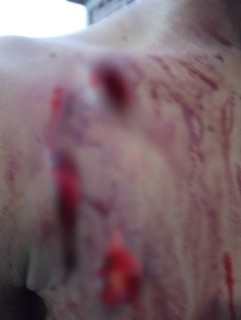 Photos she post showed three cuts on the right side of the boy’s face, including one near his eye, three deep wounds on the right side of his chest near the shoulder and another on his forearm, with blood visible across his body.